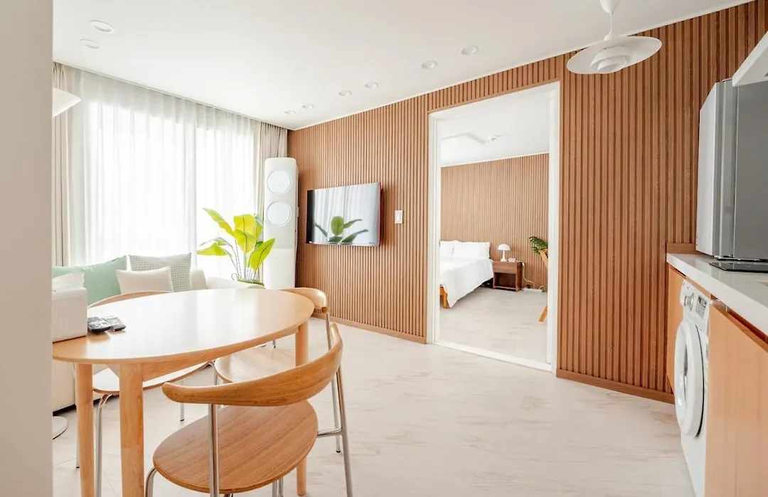 アパートの台所を利用して、おいしい自家製の食事を作ることができます。 Eonbuk Middle School Entranceバス停から徒歩でたった5分だし、鶴洞地下鉄駅から700メートルです。 압구정 위글하우스アパートにテラスがあります。